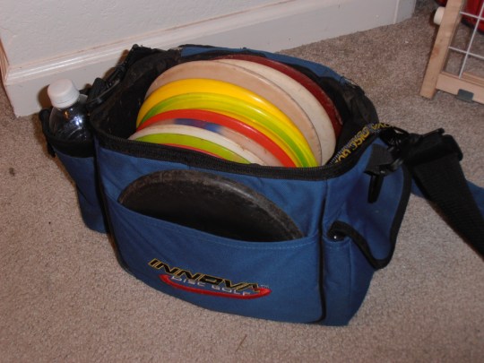 Want to submit your bag and contents? Here’s what we need: A couple of photos of your bag and discs. Put together a list of everything you carry in the bag — from food to discs to anything else. Then maybe give a paragraph or two about your bag and if there’s anything you do between casual and tournament rounds etc. Finally, don’t forget your name, location and home course! Cell phone photos are fine, but please try and make it as high quality as possible. Grainy shots might not be able to be used. E-mail all of these things to pj [at] rattlingchains.com with the subject “What’s in my bag.”