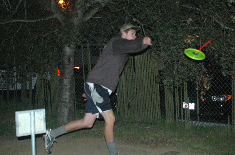 After the sun disappeared, my trek got much more difficult. I wasn’t in it for the aces, anymore. I just wanted to press on as far as I possibly could. At night, we taped lights to the bottom of the discs and there were lights on the baskets.