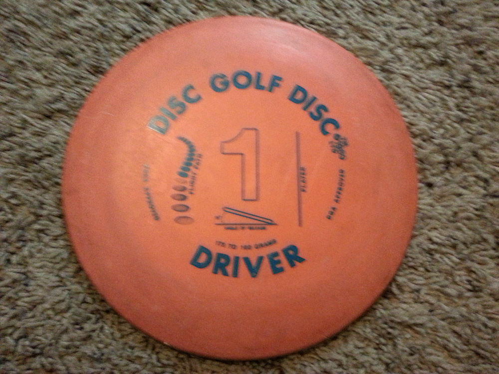 Finally, there is the great-grandfather of my bag, a 173-gram DGA Disc Golf Disc Distance Driver, made in 1989.