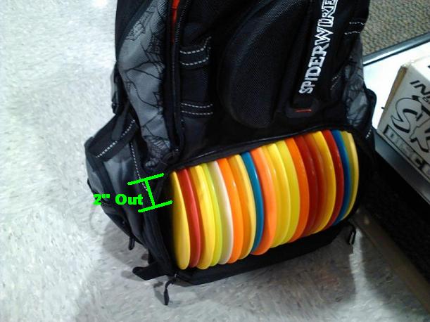 2. If I wanted to carry that much plastic, I’d fabricate or buy a cart; either a baby carriage or a ball golf bag carrier. With my back problems, I’m not in the market for a disc golf backpack, so until I fabricate a cart, I just limit myself to ten discs, which will fit in a $15 or $25 Innova bag.