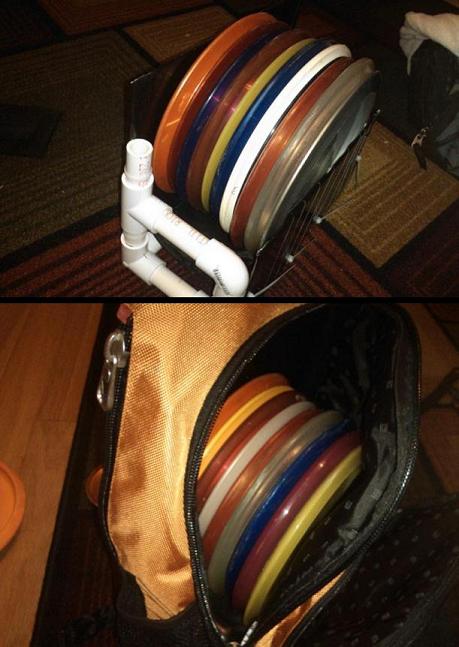 Simply dropping 20 discs into a bag will probably not end well, so repeat this mantra — “PVC is my friend.” Depending on your bag, PVC piping is most likely going to be the core of any frame you make. It’s light, it’s waterproof, it can make any size frame you need, and it’s strong.
