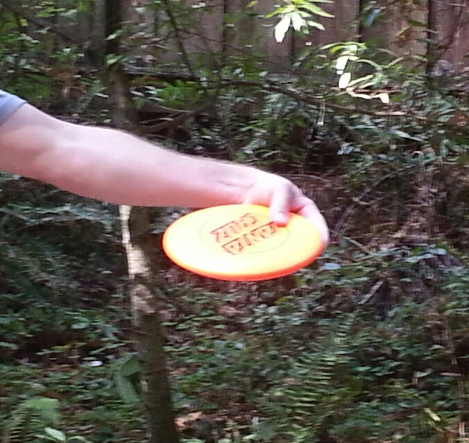 A close-up of the hand and disc. Note the straightening arm and the hand still in front of the disc. (photo by Sandy Trageser)