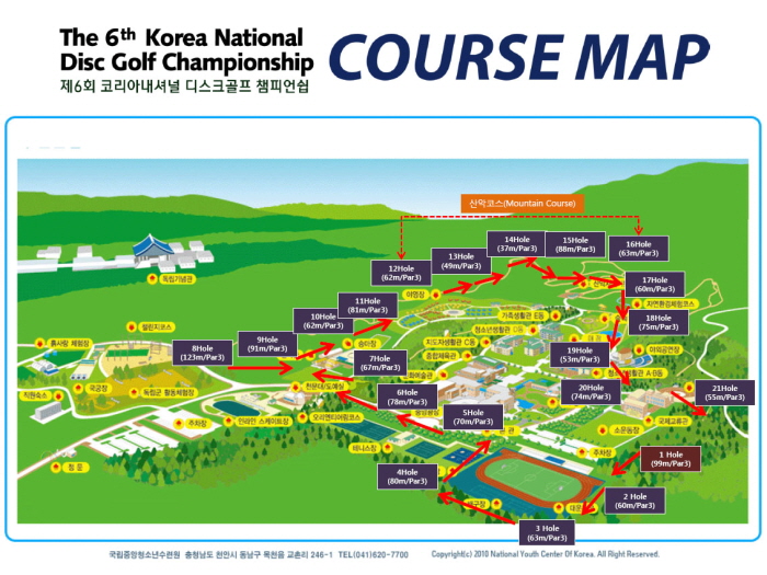 The course for nationals will be a temporary course set up on the grounds of the Korean National Youth Center, right in the heart of Seoul. As is appropriate for most Korean courses (save, of course, The Dragon’s Lair with our awesome 600-foot hole), the course is set up to be short and very technical.